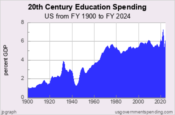 Spending on education increased by 1,000%4 in terms of GDP per capita from 1950 to 2020. The average person in the 50s finished 4 less years of schooling in comparison to those who are alive today. Given that the returns to education are primarily driven by signalling, this is a net negative, as people must spend more time in school to get an equally valuable credential.