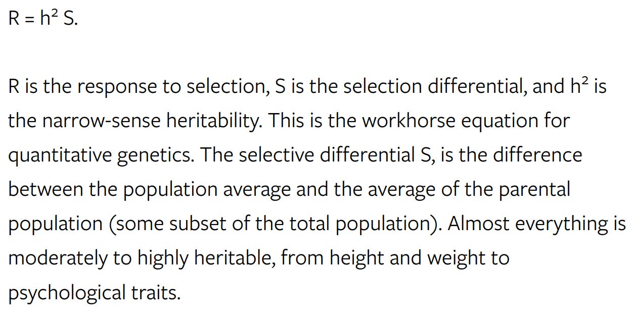 They also claim that culling 1-2% of the population (assuming no reproductive success in the culled) would correspond to a selection differential of 0.027 - 0.049 SD per generation.