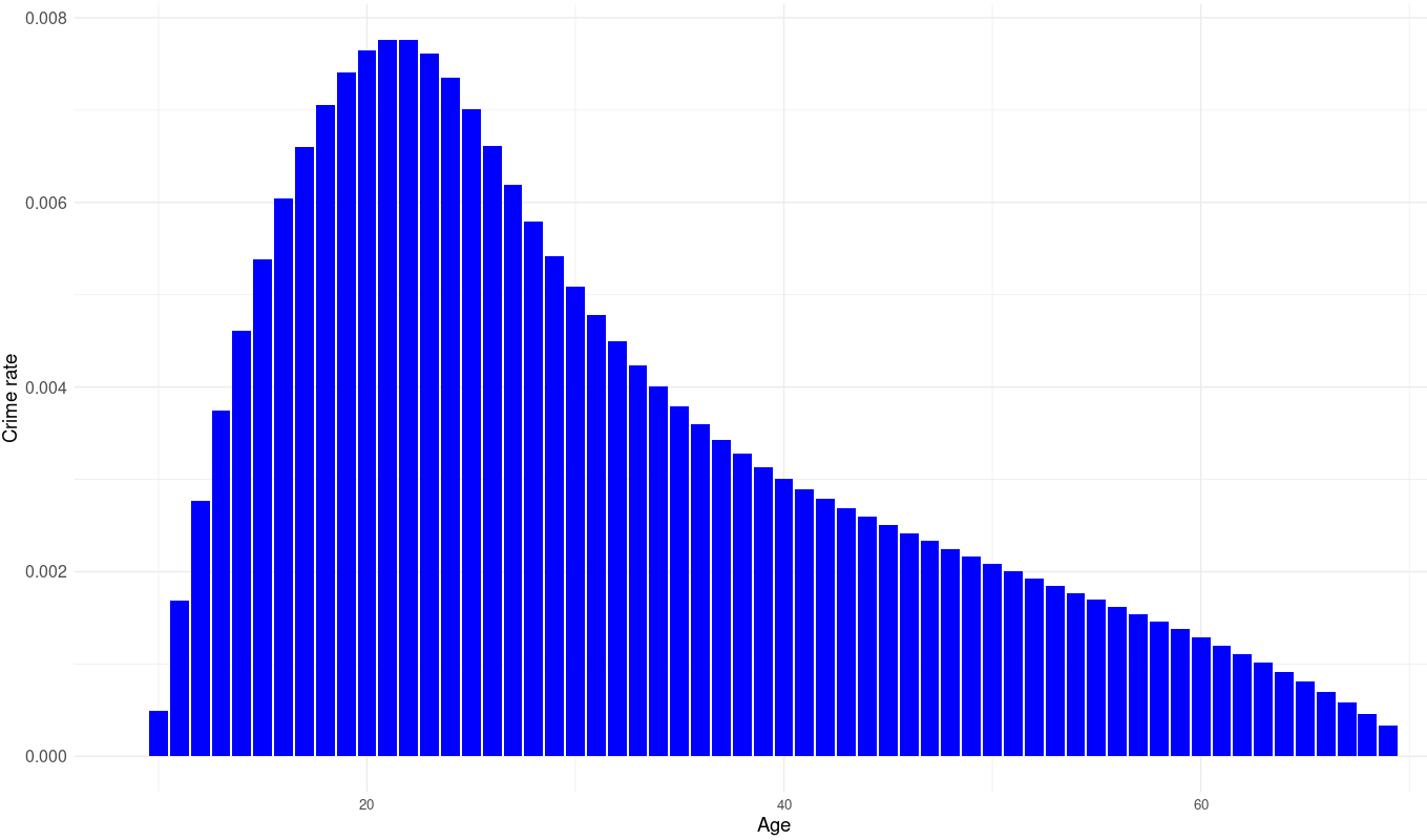 To estimate the effect of executions had on the English genome properly, some statistics must be calculated: the heritability of criminality, the age crime curve, the proportion of the population that is executed, and the mean number of children fathered by age.