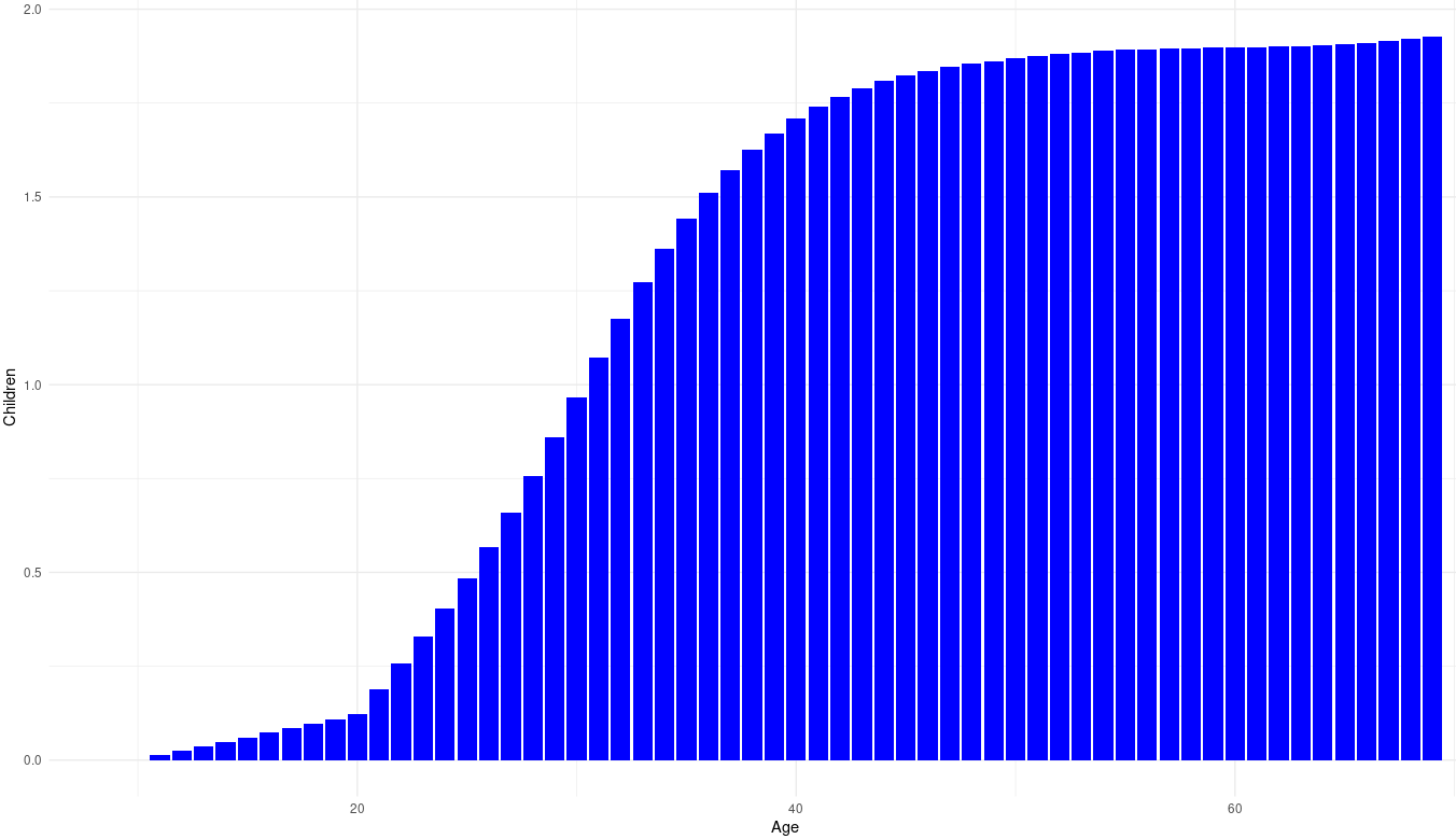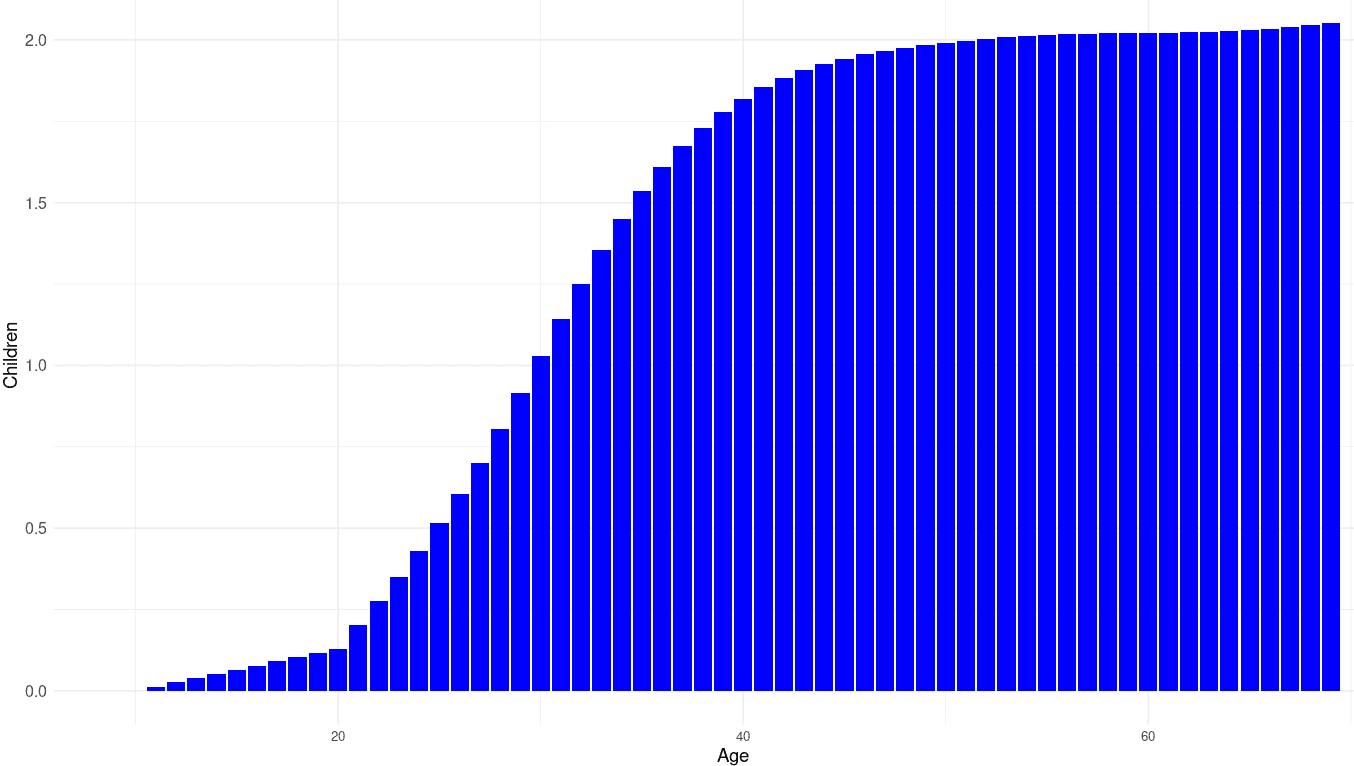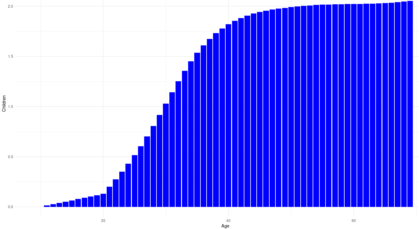 #polan10$children2 is a vector which contains information of the average number of children by age