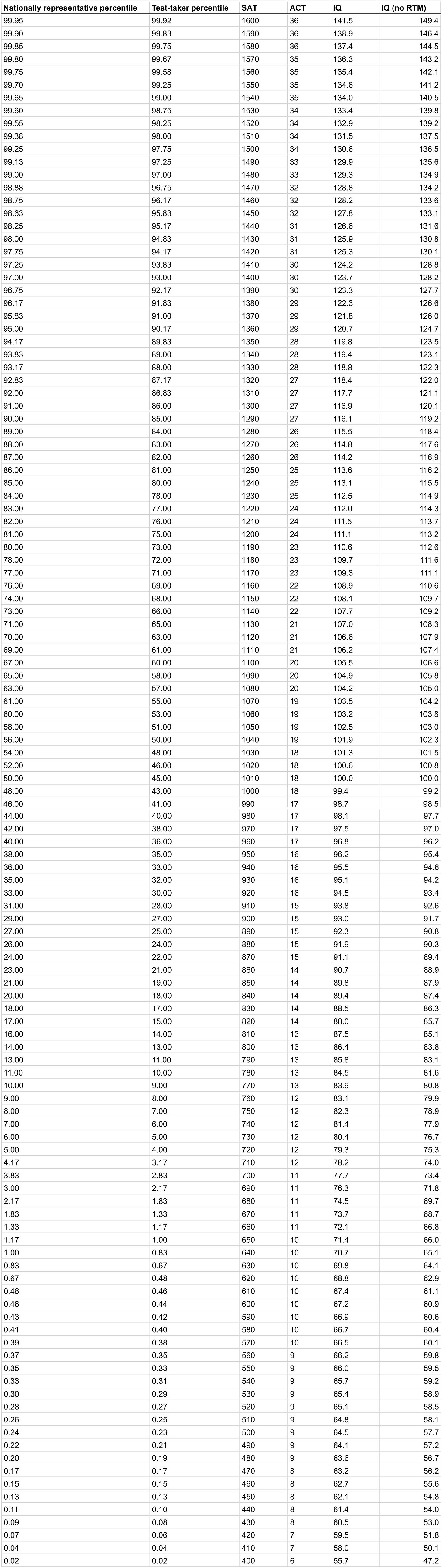 Converting SAT and ACT to IQ