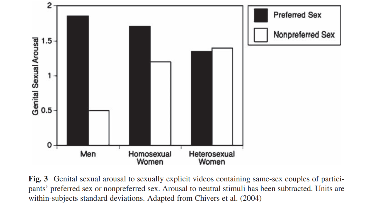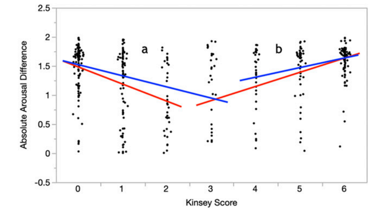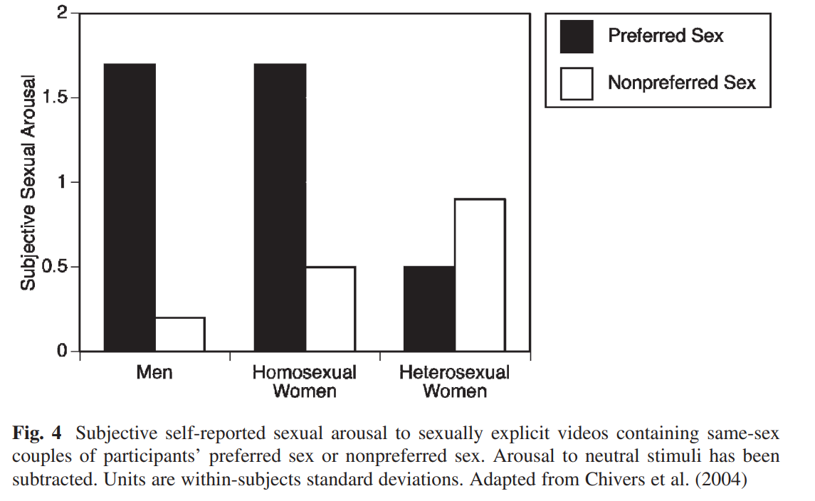 One could interpret this as a vindication of the old idea that “all women are bisexual”; JM Bailey instead argues (implies?) that this is an indication that most women do not in fact have a sexual orientation (not necessarily the same as sexual identification), as the function of their libido is not to seek out partners: