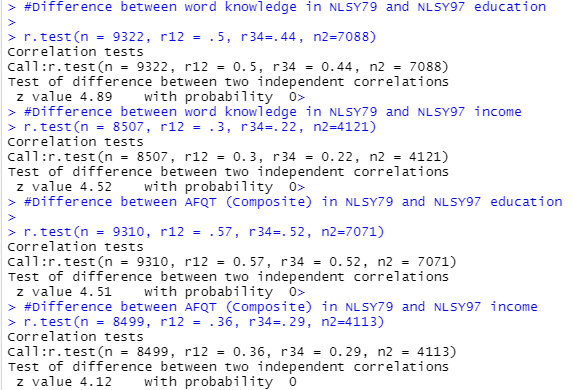 I found that the four differences in correlations I tested did reach statistical significance by any reasonable threshold: