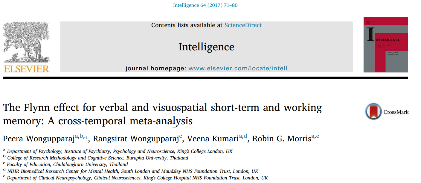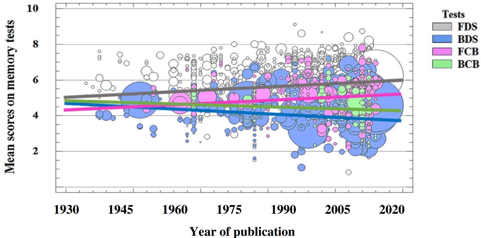This is relevant because the ability to memorise digits backwards is a better indicator of intelligence than the ability to memorise them forwards, so it has been cited as evidence that the Flynn Effect is an artefact of performance changes on specific tests instead of a general improvement in cognition.