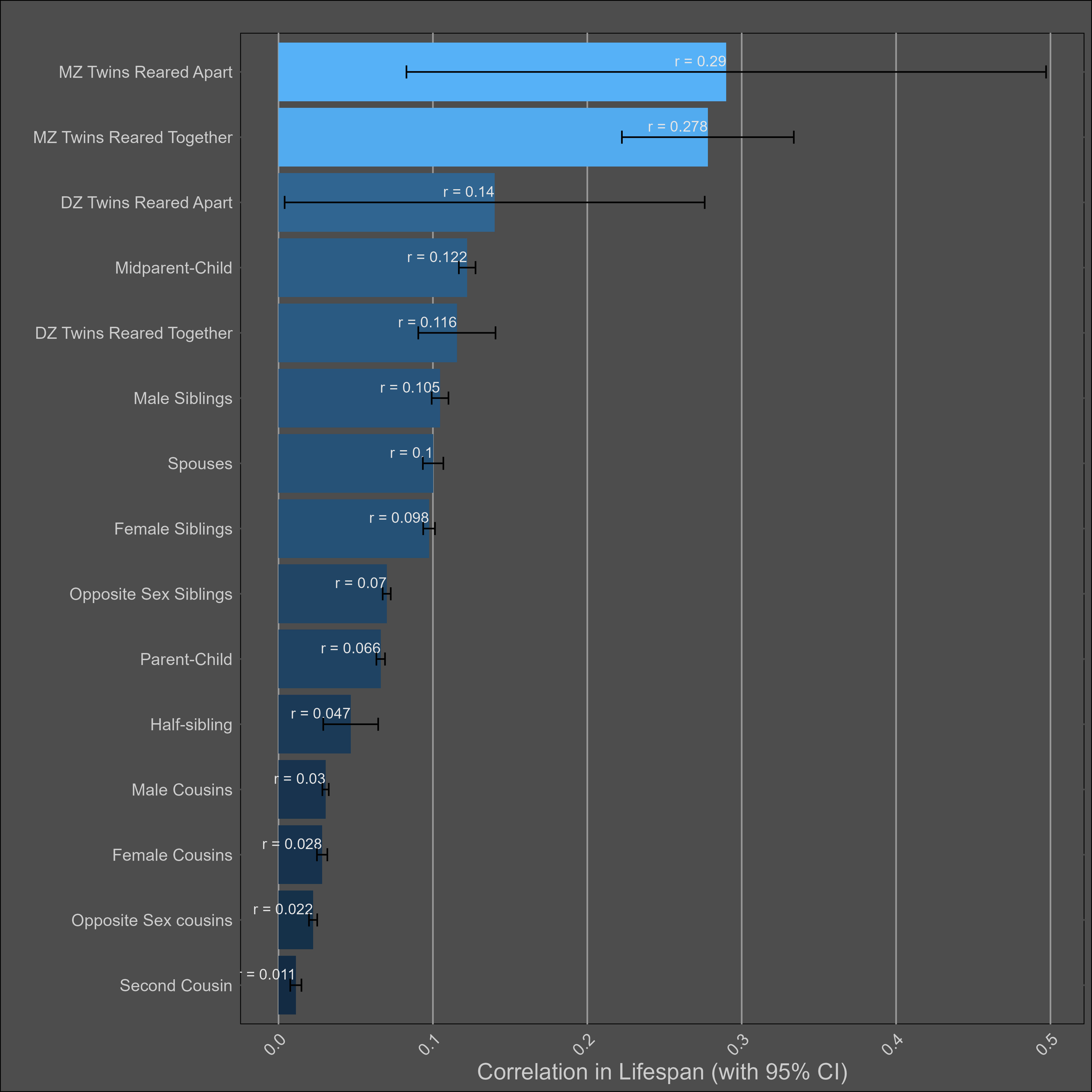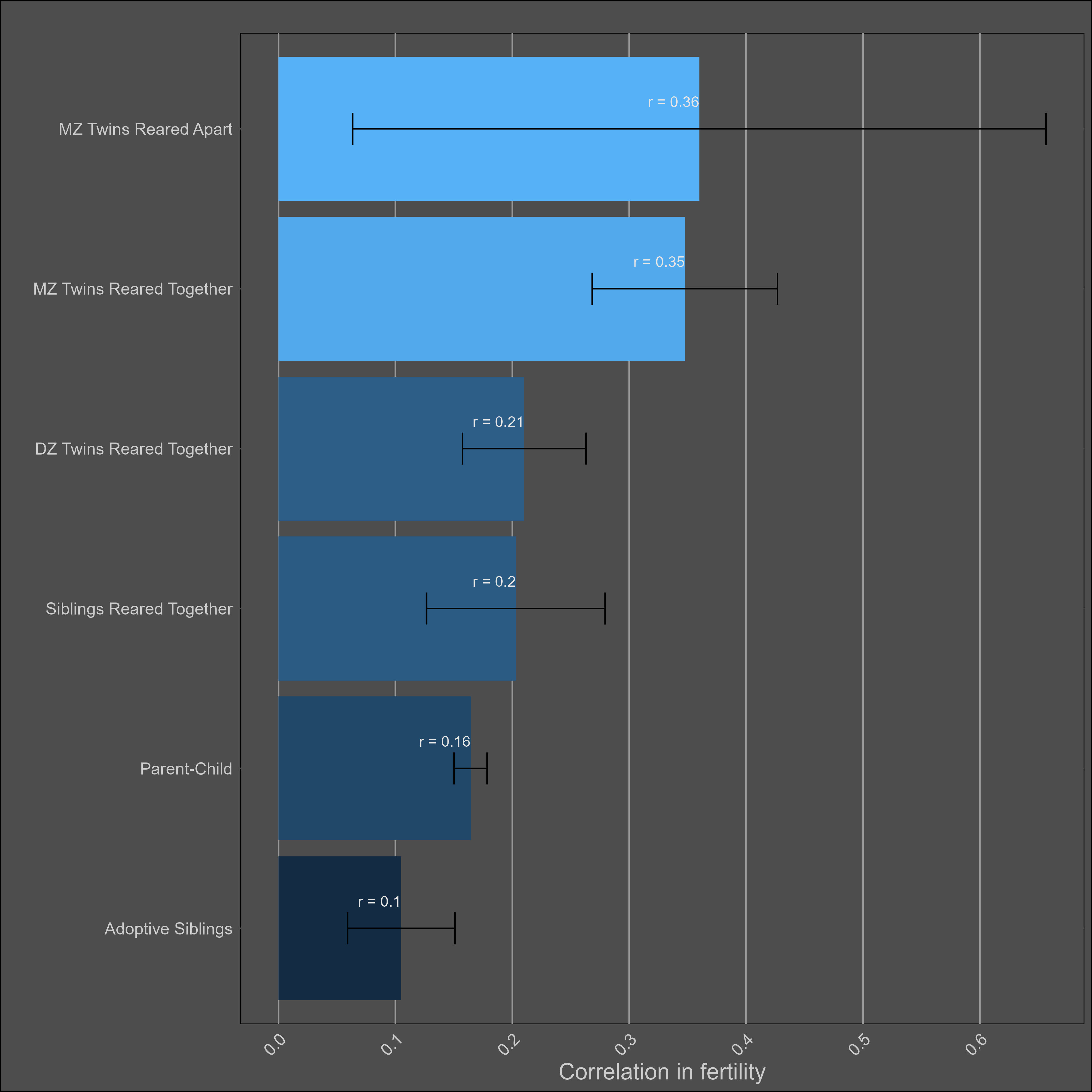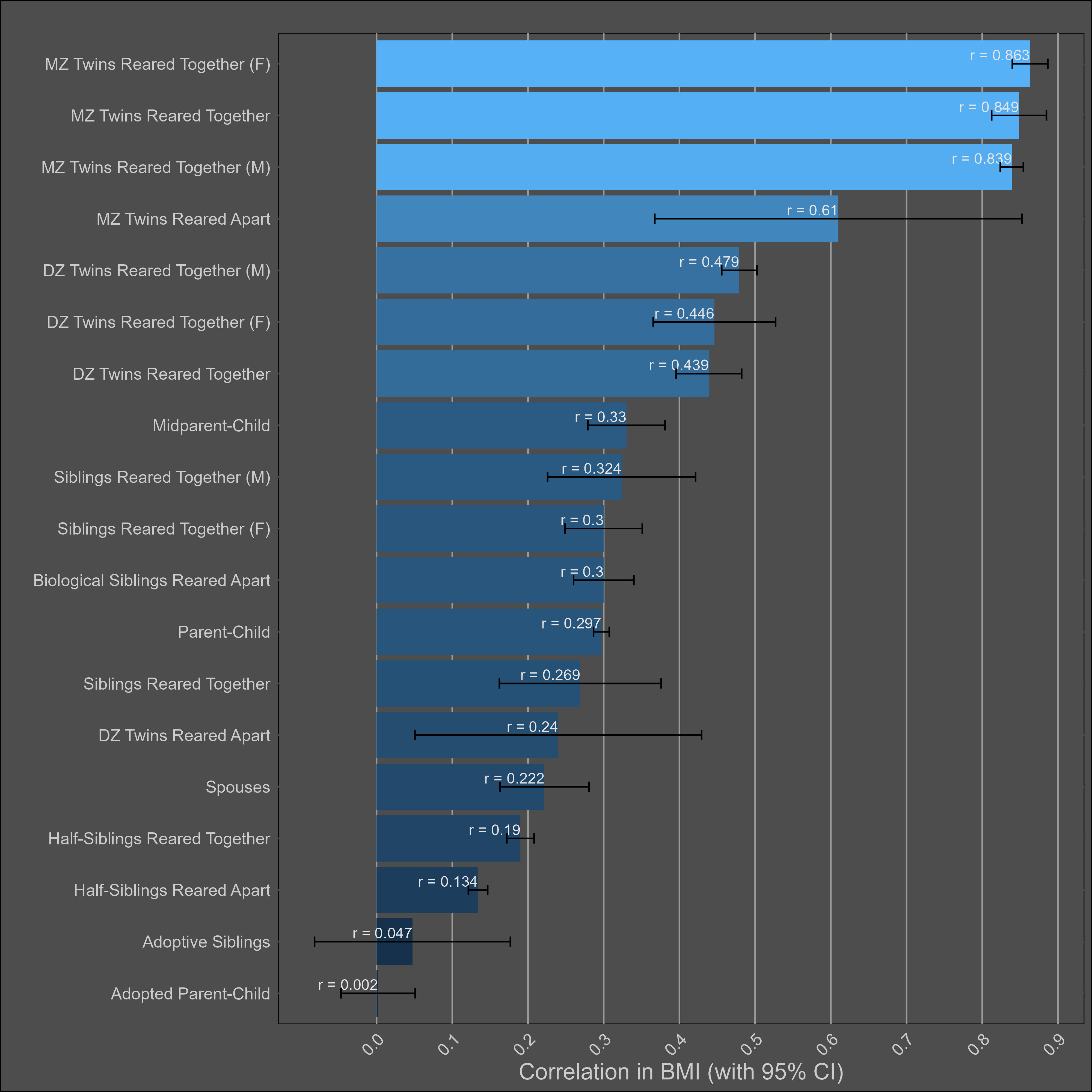 Correlations between female family members were slightly larger than those between male family members, which in turn were larger than the opposite-sex correlations.