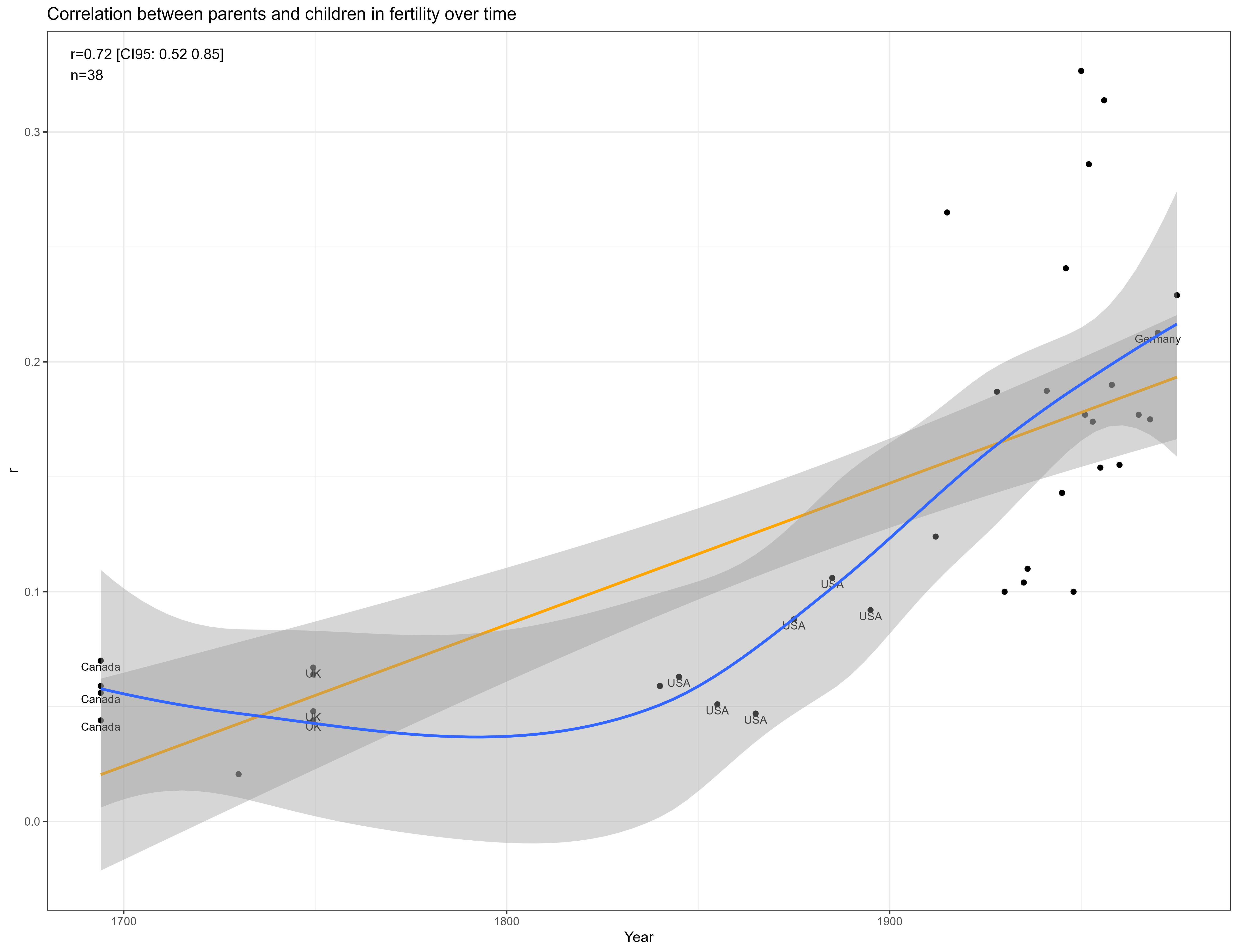 It’s clear that there are social transmission effects here; the political views of parents and their adoptive children are almost as highly correlated as those of biological parents and their children. Selective placement presumably has some role in this, but correlations between adoptive and biological parents are typically in the 0.2 - 0.4 range — not high enough to justify this correlation. Cousins are also more similar to each other in comparison to avunclars, which violates a genetic model, or implies large differences between cohorts in the effects of genes.