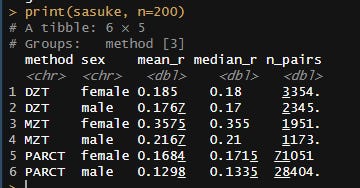 Correlations split by sex: