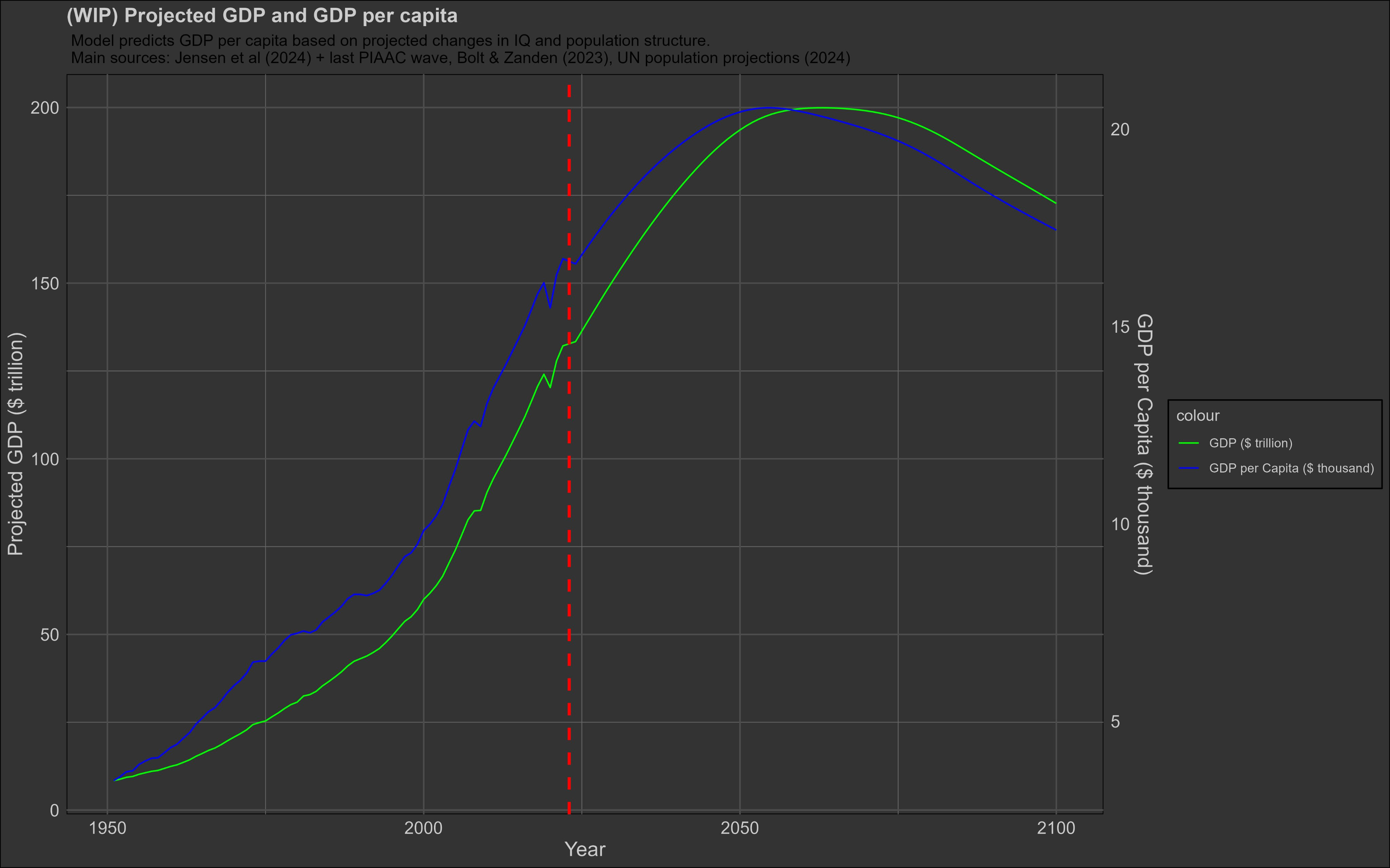 More interesting is whether human life worsens in quality over the next century. My intuition is that it probably will, especially if the birth rate issue continues. I’ve already developed an economic model that predicts future GDP based on population projections, changes in national IQ, and previous patterns in growth.