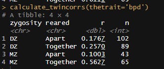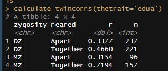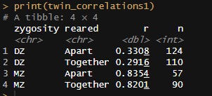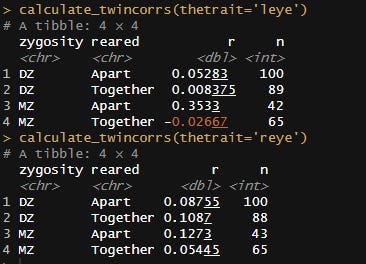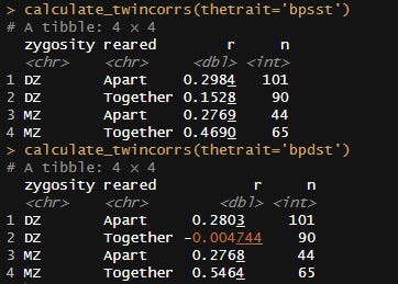 Slowly, more and more samples have been coming out, one being the Swedish Adoption/Twin Study on Aging (SATSA). I wasn’t satisfied with the methodology that was used to calculate the IQ scores in that study, so I did it myself1. Just a few years ago, IQ correlations within Danish and Chinese twins were released.