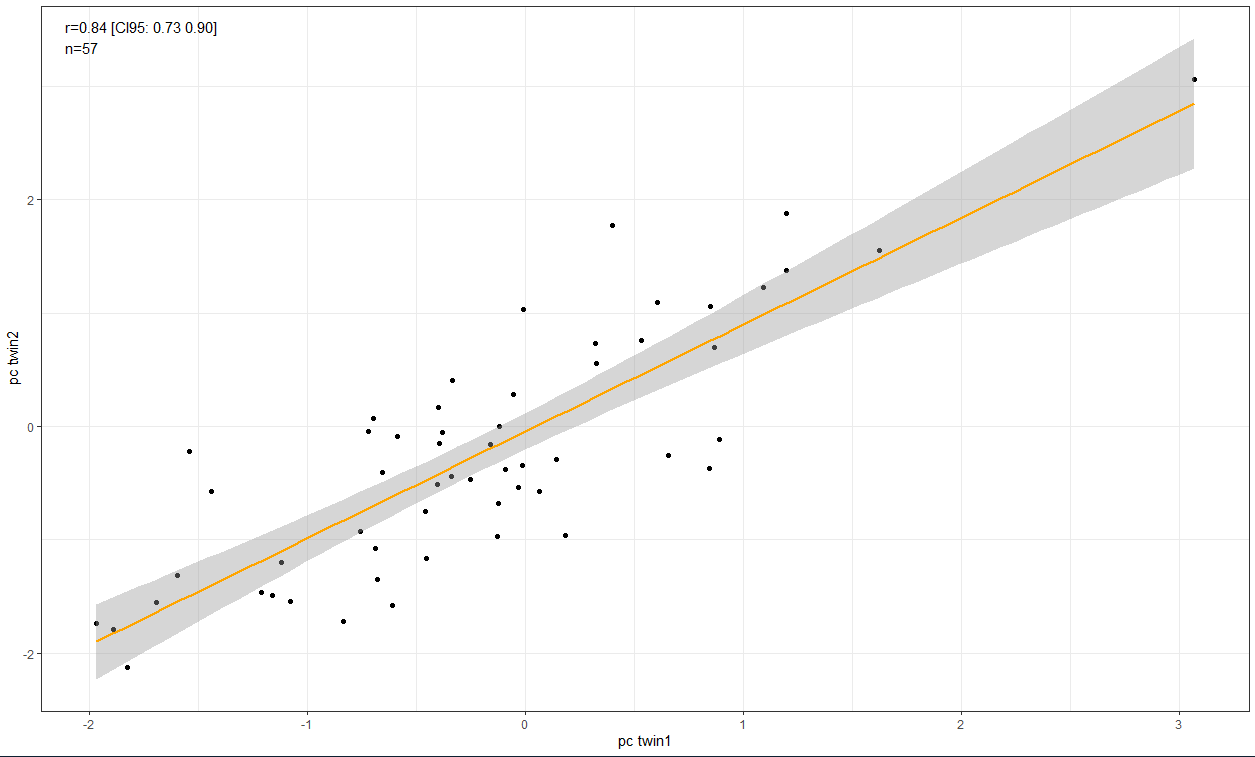 Bouchard has a correlation of .78 between 46 MZA pairs in the SATSA, which is pretty close.
