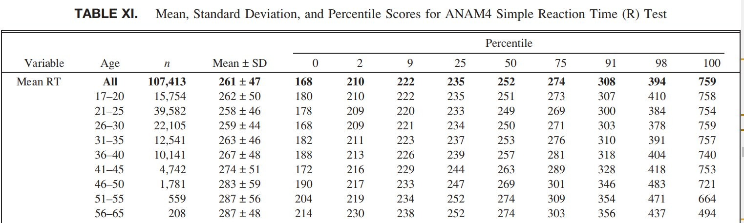 On my old blog, I got access to self-reports of League of Legends rank and reaction time: the correlation was -0.2 (so faster reaction time = better rank). Assuming that reaction time has a reliability of 0.63, the true correlation is probably about -0.25. Pro players in LoL (who are about 5 standard deviations in skill above the population mean) on average have simple reaction times of 187 ms, which is around the 1st or 2nd percentile: faster than you would expect from the linear correlation, but not far from it.